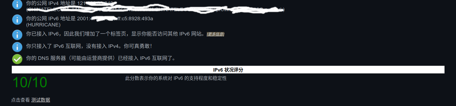 梯子关掉后,经典的 ipv6 test 也是可以通过的。